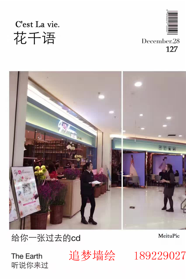 追夢墻繪在網(wǎng)紅西餐廳-廣州花千羽,繪制了別有魅力,獨具一格的餐廳彩繪,特有的浪漫的氛圍,讓不少網(wǎng)紅心動了