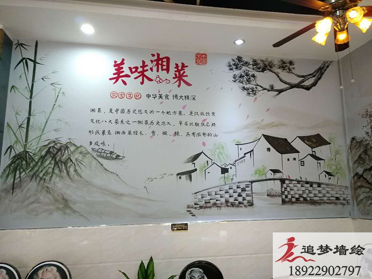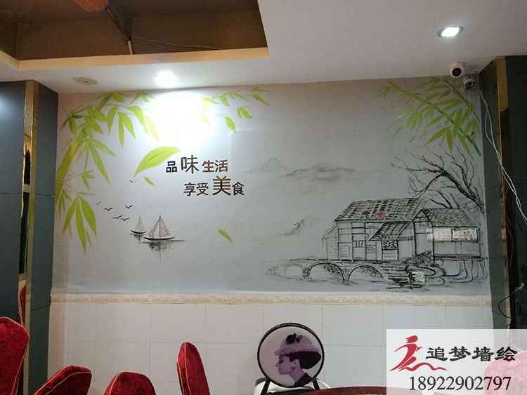 墻繪項目介紹:傳統(tǒng)中國菜酸菜魚配上濃厚的水墨畫風(fēng),讓店鋪增添了色彩的同時,也帶有濃厚的中國味