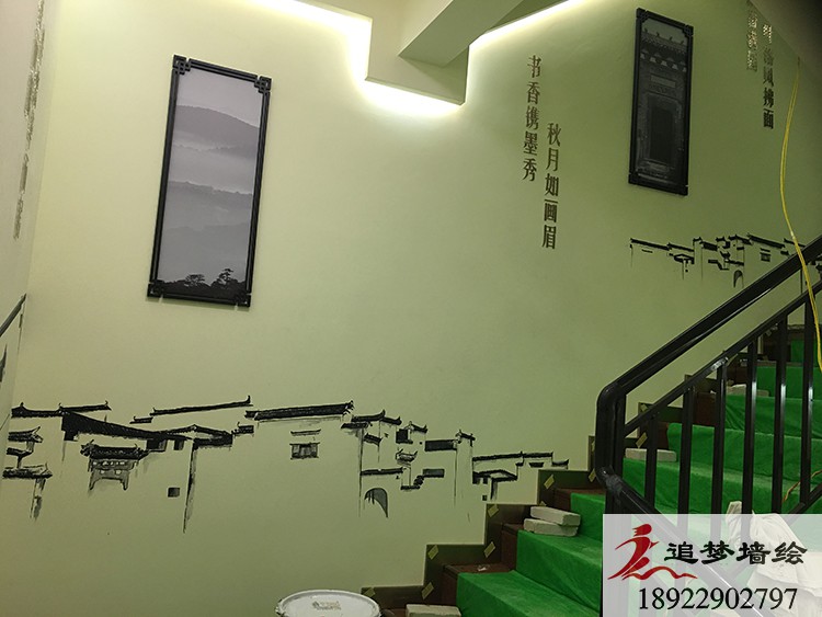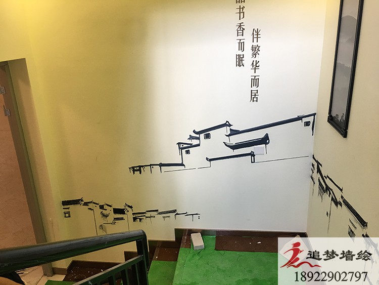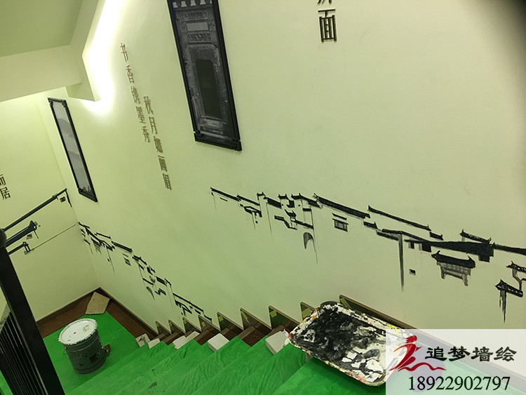 墻繪項目介紹:不一樣的碧桂園不一樣的風格,始心碧桂園水墨中國山水畫的風格加上中國傳統(tǒng)的白墻黑瓦,濃厚的中國風從中而生