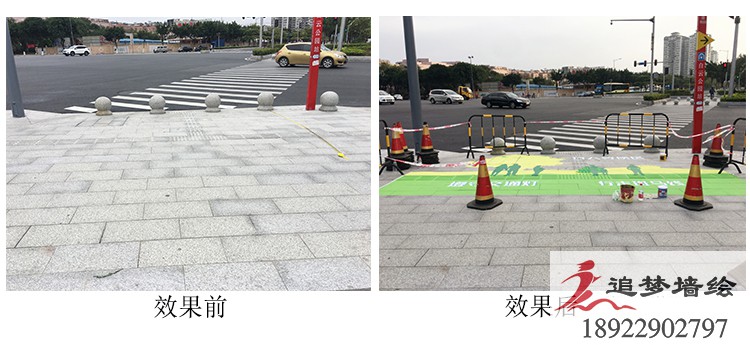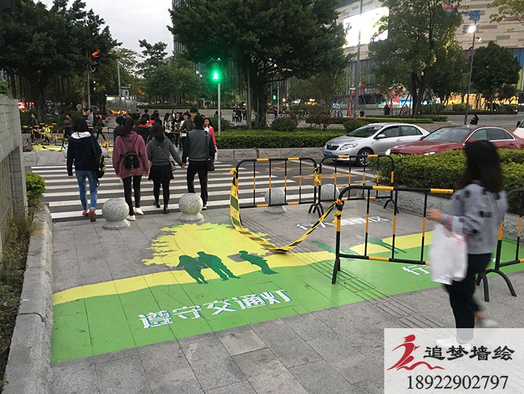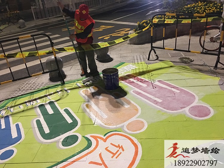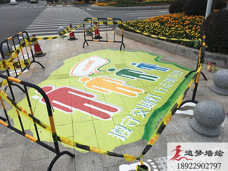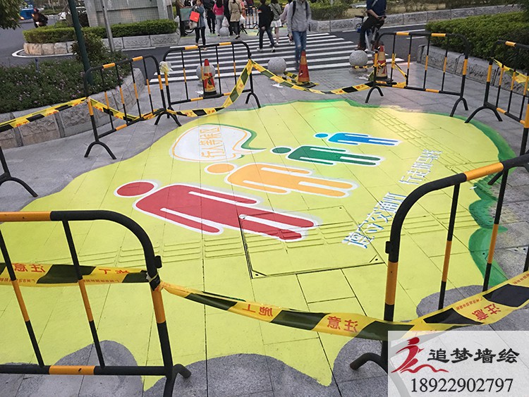 墻繪項目介紹:為了讓城市更添一份色彩,我們在地上畫了一些趣味的圖案,讓這個忙碌的城市變得多了一絲趣味和一些色彩。