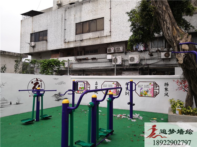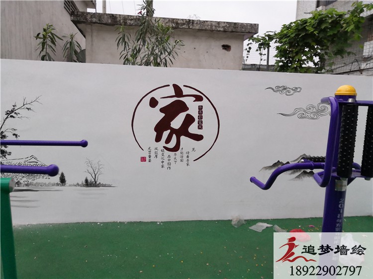 墻繪項目介紹:石排太和社區墻繪設計,運用國畫的繪畫風格體現中華的傳統美德,與社區環境完美融合,得到領導與社區民眾的的認可贊許,給追夢墻繪很大的鼓勵.
