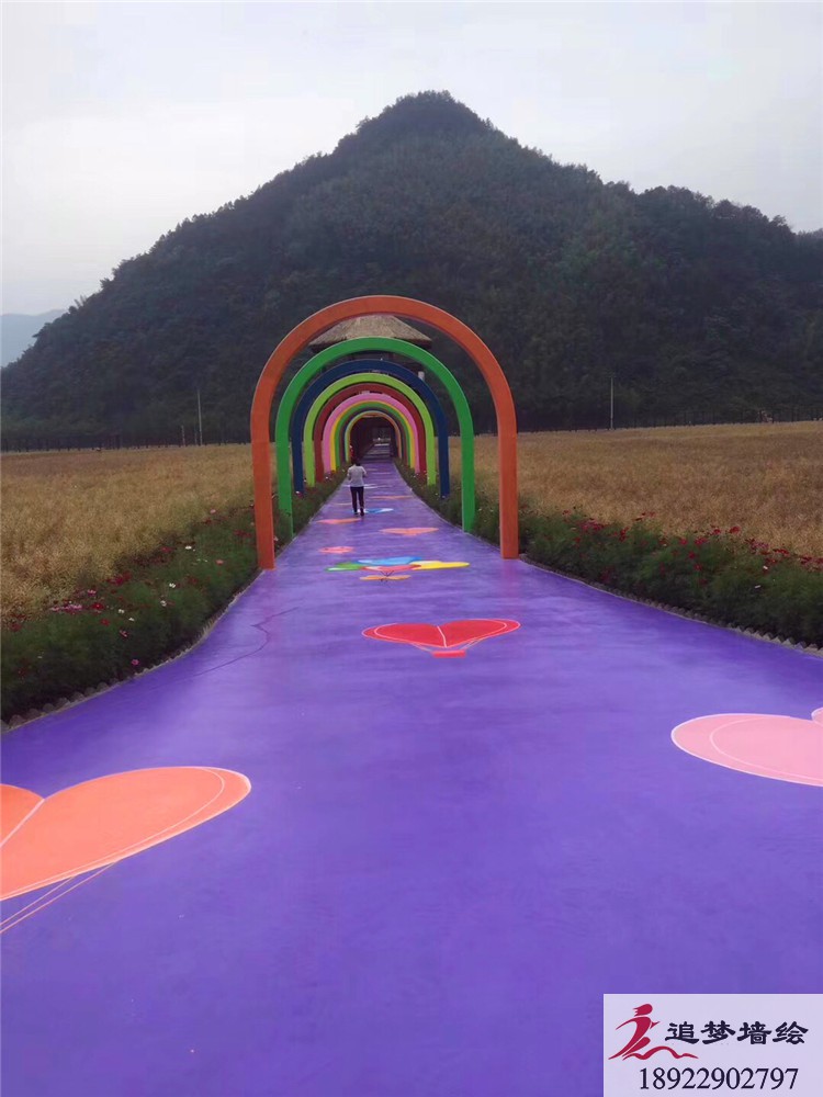 墻繪項(xiàng)目介紹:這次是關(guān)于戶(hù)外的一系列3D地畫(huà)。整體紫灰色為基層,主要是為了突出圖案的整體性。