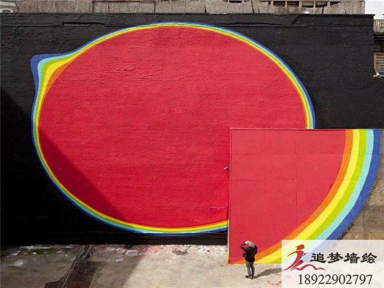 墻繪項目介紹:此次彩繪的整體風格是簡約的風格,用緊密的彩色和結合成不同的結構,分離的色彩隔面,幾何簡單而有序的排列,用藝術的表現手法展示了年輕朝氣的氣息。