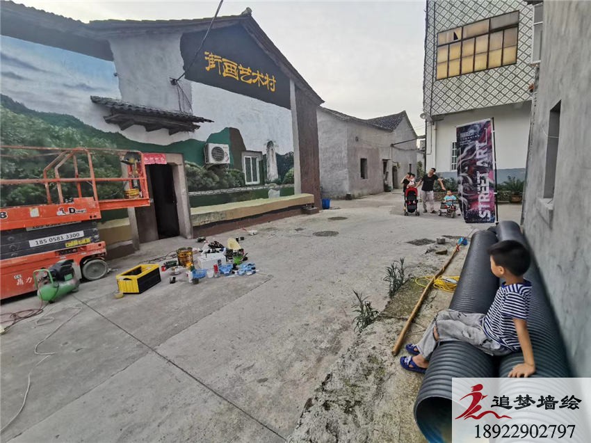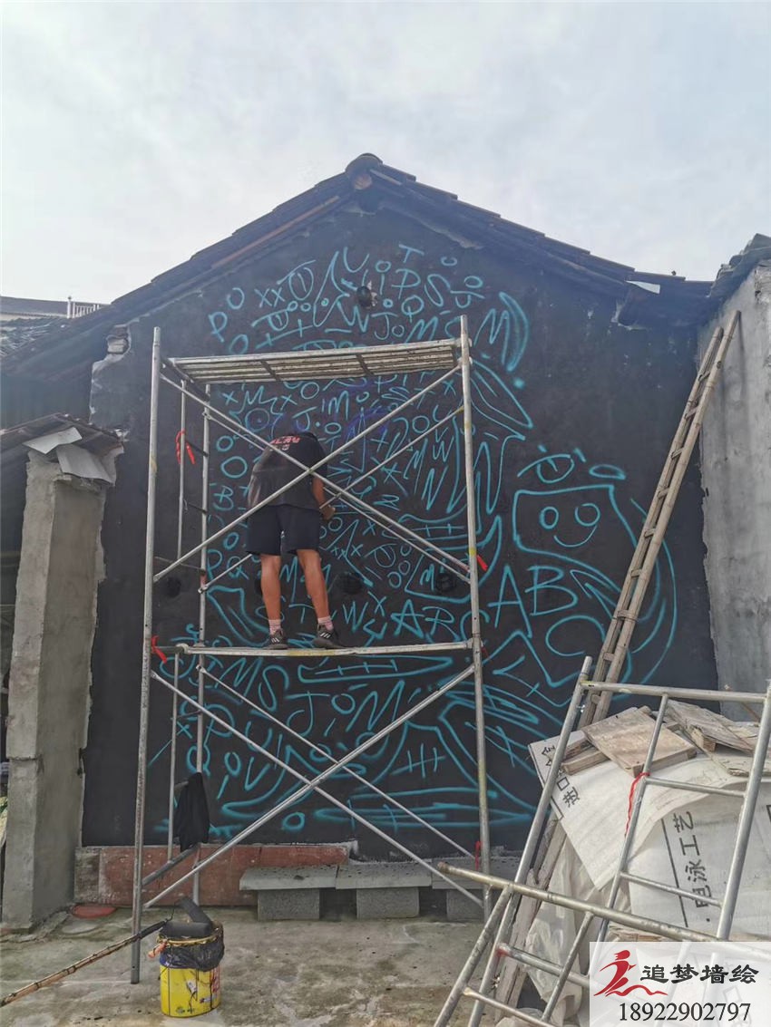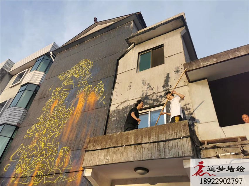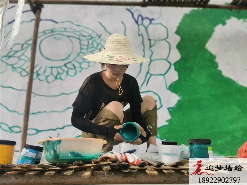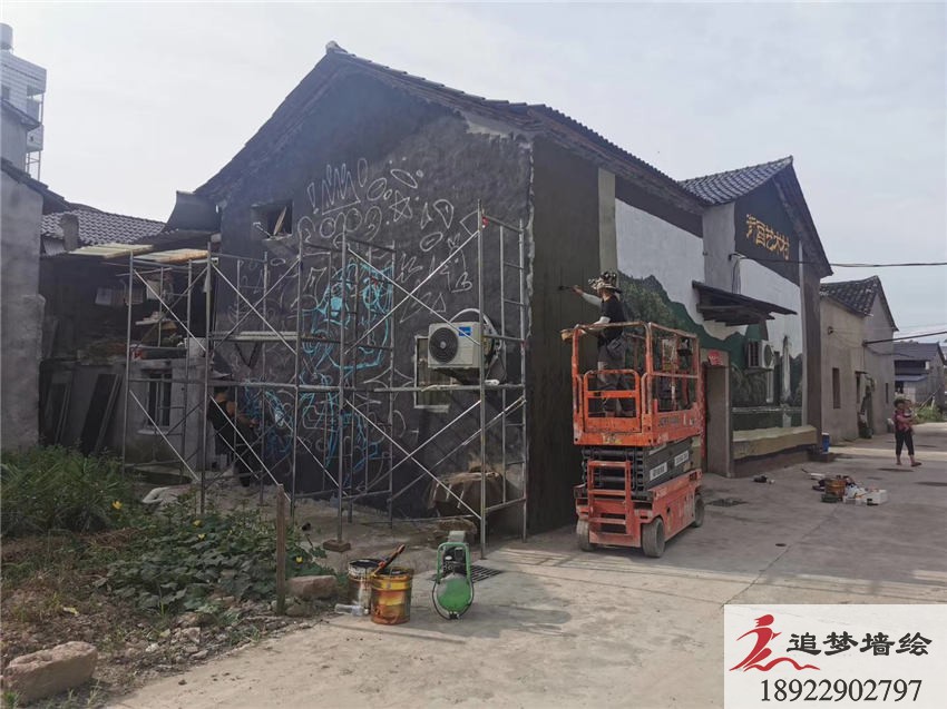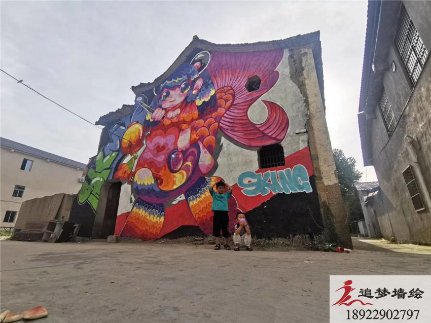 墻繪項目介紹: 整個設計是結合了農村文化,加油干的干勁,色彩豐富,激情,活力這些都達到了。客戶尋找我們追夢墻繪一起策劃。我們設計師切合實際,以與農村特色相結合為主,配合圖案,一些文字字母,把畫面做的精彩生動,協調統一,展示了農村的氛圍和打破農村刻板印象的涂鴉