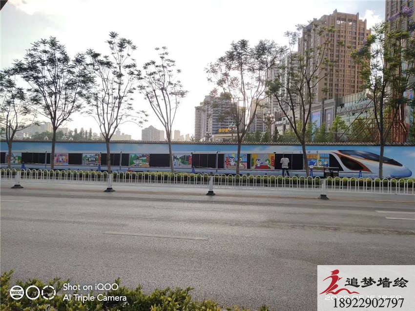 該墻繪項目突出全面創建文明城市的主題,為了配合城市采用了列車和城市風貌的卡通形象作為圖案,整體背景是綠化的環境,卡通人物在列車中不同故事的布置,色調明快,頗具童趣氣息,主題中心簡單明了,給人以溫馨的感覺,讓人們更好的共同創建文明城市!作品已完成,敬請欣賞!