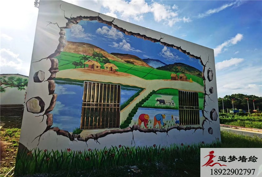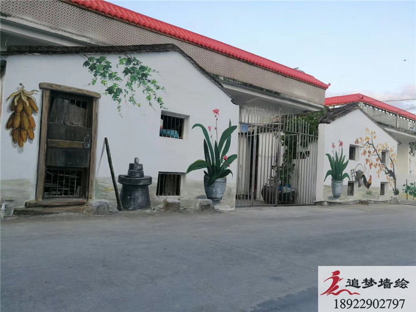 該墻繪項目要求突出鄉村古巷的氣息,為了滿足不同人群的審美觀,在不同的墻體選用了不同的風格插圖,整體是與當地環境和場地相呼應相結合的。也采用了農村氣息很濃的主題的布置,在墻上掛著的玉米辣椒,靠墻的盆栽等。也設計了人物和場景相結合,3d風格的農場,還有鄉村有代表性的牛羊和農民,風格有趣,給人以溫馨的感覺!作品已完成,敬請欣賞!