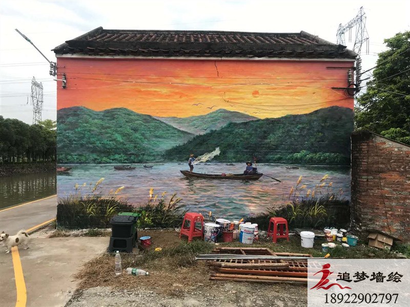 墻繪項目介紹: 江門鶴山這個項目的彩繪在不同的墻面設計不同的彩繪圖案。我們設計師以油畫風格為主,用各種各樣和諧的鄉(xiāng)村場景把畫面做的精彩生動,色調(diào)明快,協(xié)調(diào)統(tǒng)一,展示了符合鄉(xiāng)村氣息的內(nèi)容。