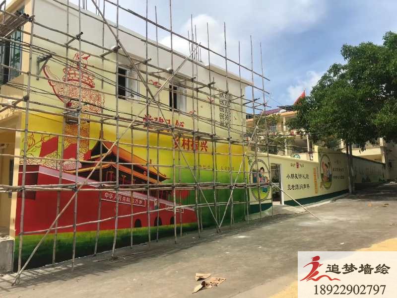 墻繪項(xiàng)目介紹: 海珠這次的項(xiàng)目主要繪制彩繪圖案整體設(shè)計(jì)圍繞鄉(xiāng)村振興戰(zhàn)略為主題,又要突出黨建的主題。圖案是以鄉(xiāng)村氣氛為主的舞獅,荷花,采用圖文結(jié)合的表現(xiàn)形式,突出了自然、又以北京天安門和黨相關(guān)的元素展示黨建文化。墻繪整體基調(diào)樂(lè)觀積極向上。