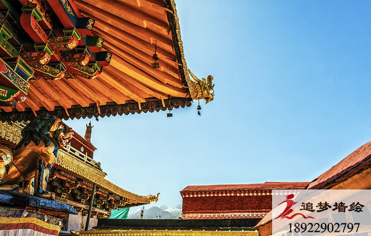 墻繪項目介紹: 這個項目的古建筑彩繪是根據嶺南文化進行彩繪圖案設計。是由蘇式、旋子、和璽彩畫融合而成的彩繪效果與其他古建筑彩繪風格大致一致,卻體現了當地特色習俗與審美。用豐富色彩把畫面做的精彩生動,色調明快,協調統一,具有地方特色。